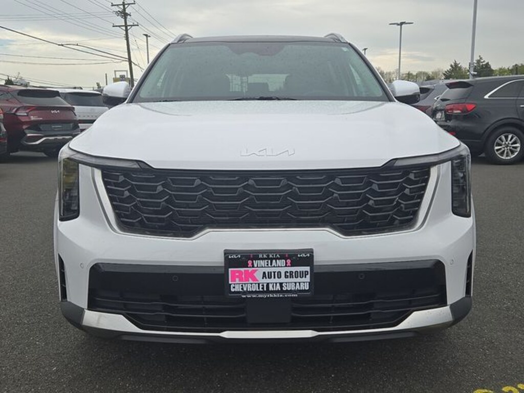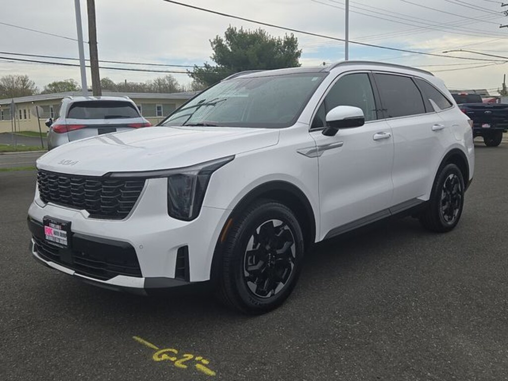 This 2025 Kia Sorento S in Glacial White Pearl features: